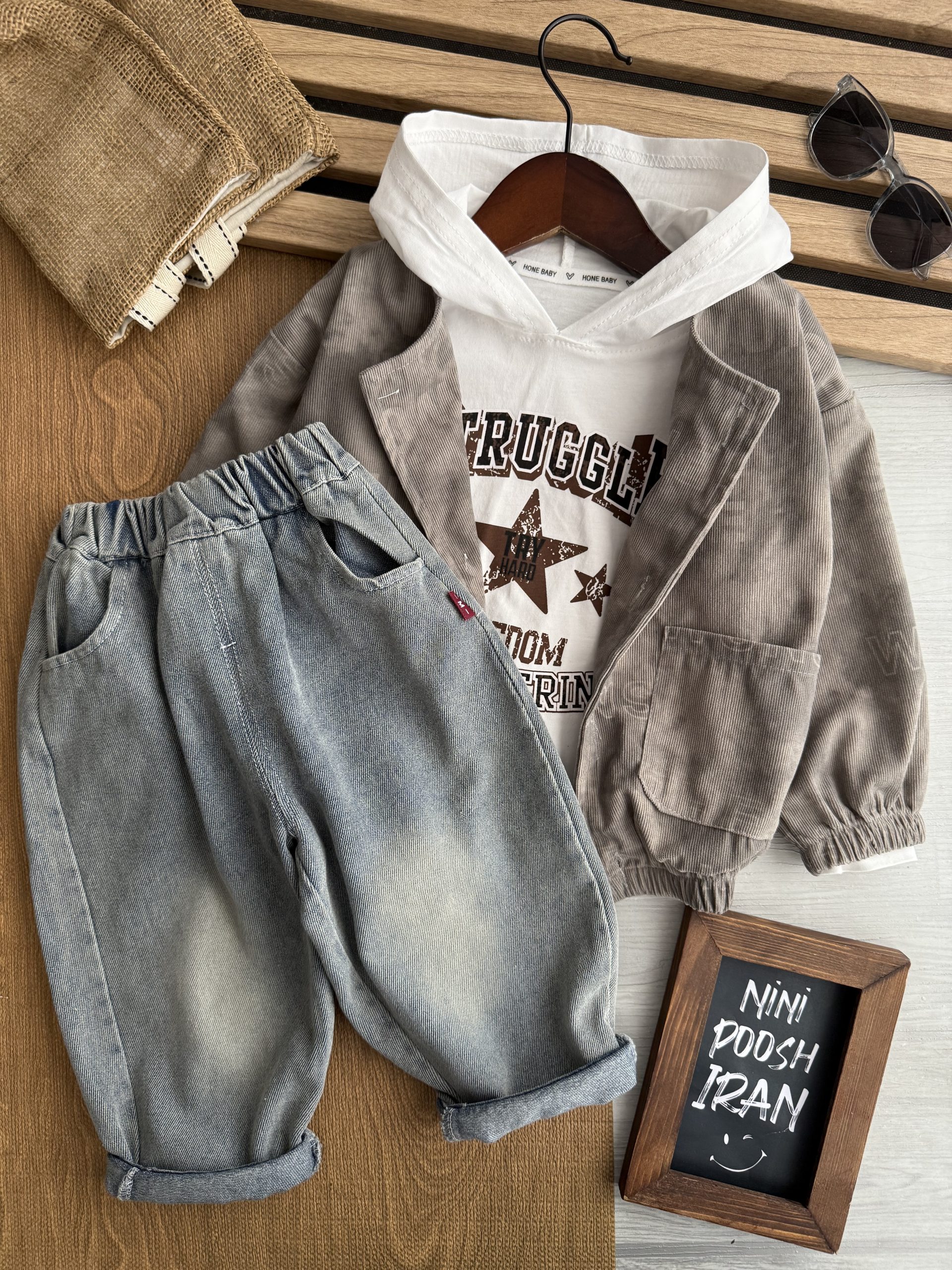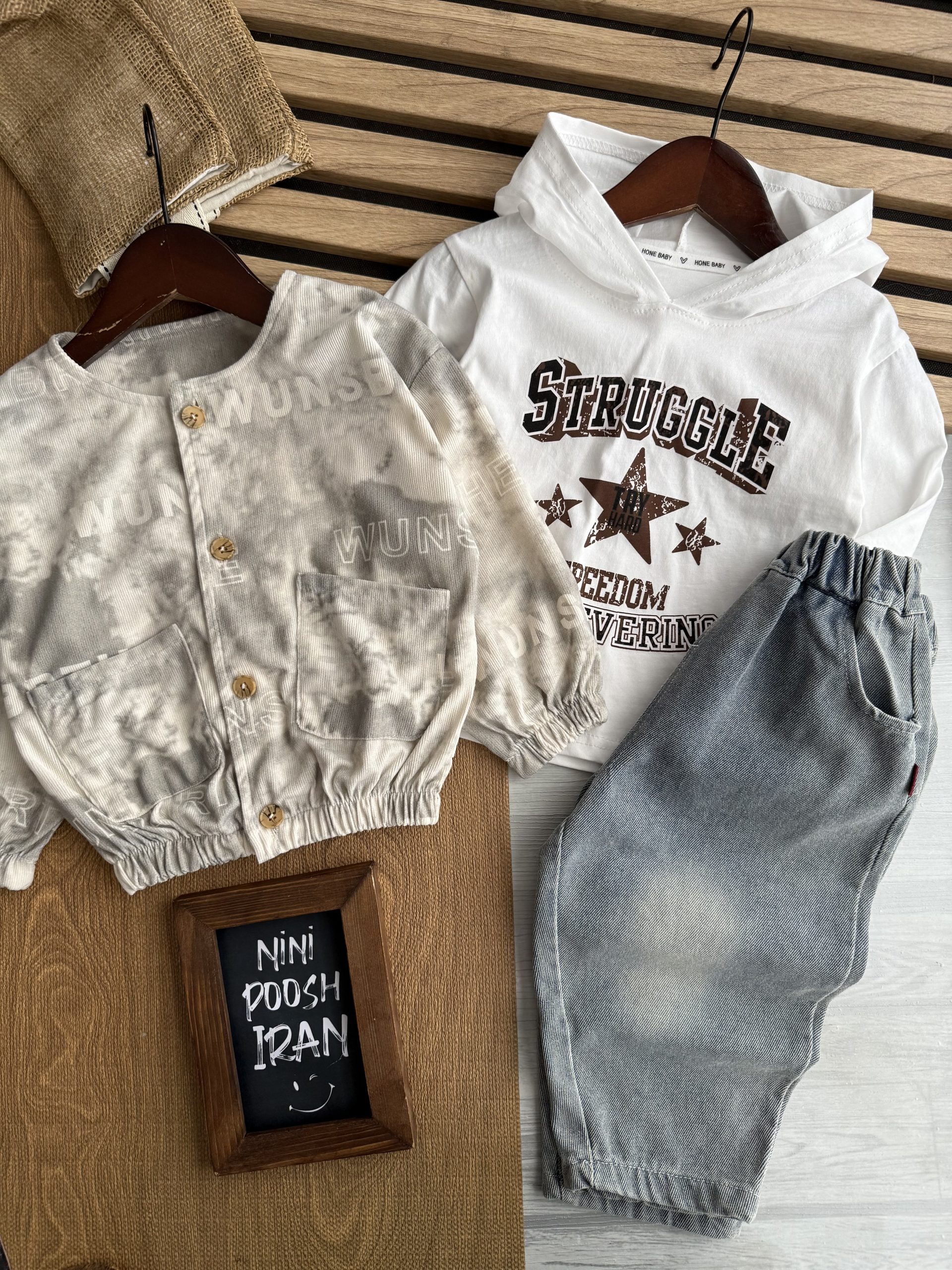 قد هودی : 43 ، پهنا هودی : 35 قد شلوار : 57